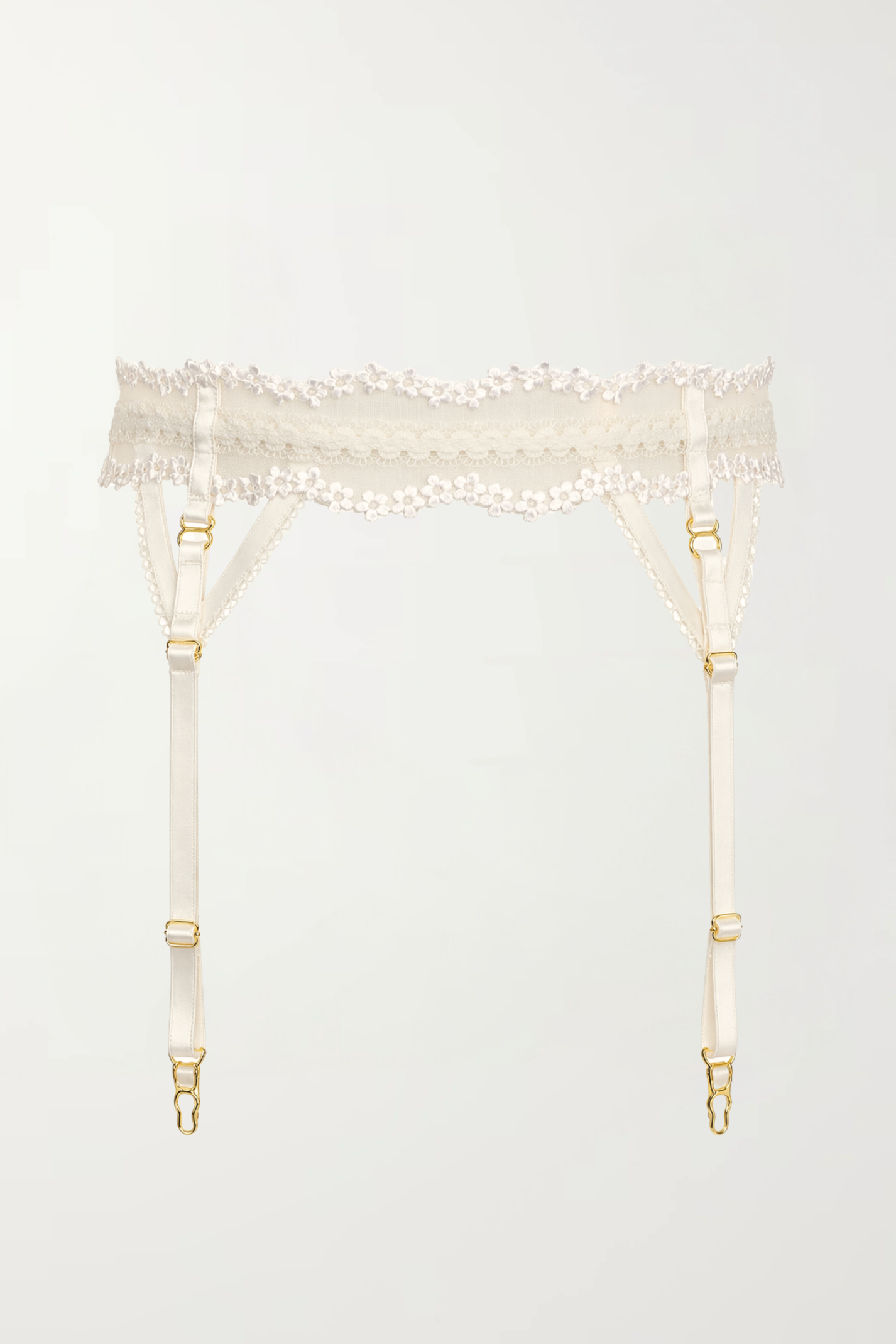 Kiss and Tell Suspender – Ivory Embroidered Bridal Mesh Suspender Belt